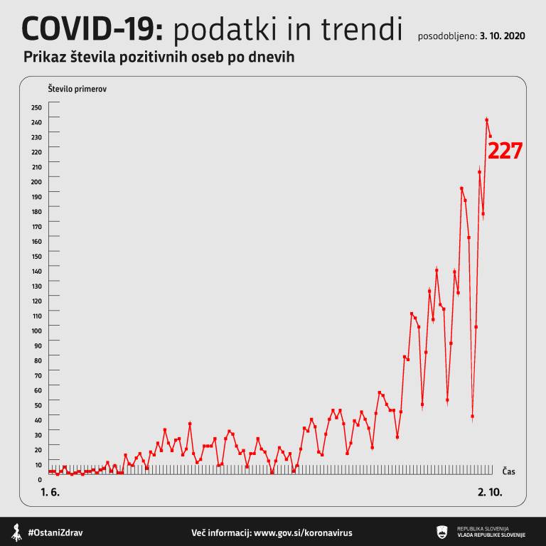 Spomnimo: rekord v dnevnem številu novih potrjenih okužb je nazadnje padel 1. oktobra, ko so zabeležili 238 novih okužb.