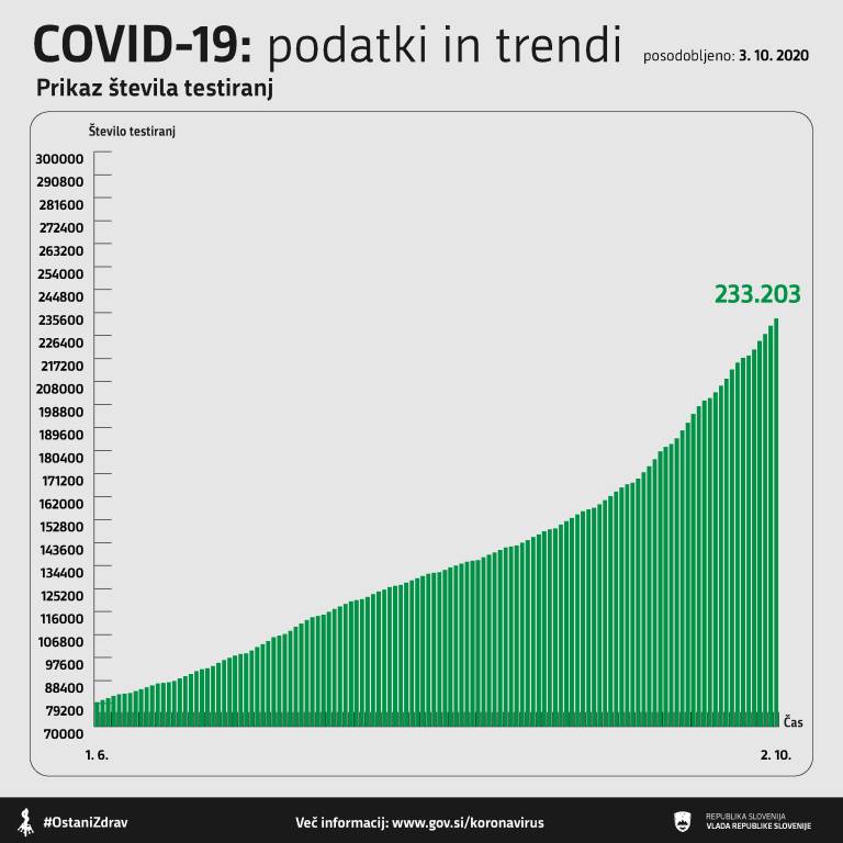 Z Vlade Republike Slovenije so sporočili sveže podatke o trendu obolelosti s koronavirusom v Sloveniji.