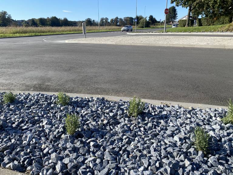 V novem križišču Volkmerjeve ceste in Ulice 5. prekomorske so zasadili velik nasad sivke.