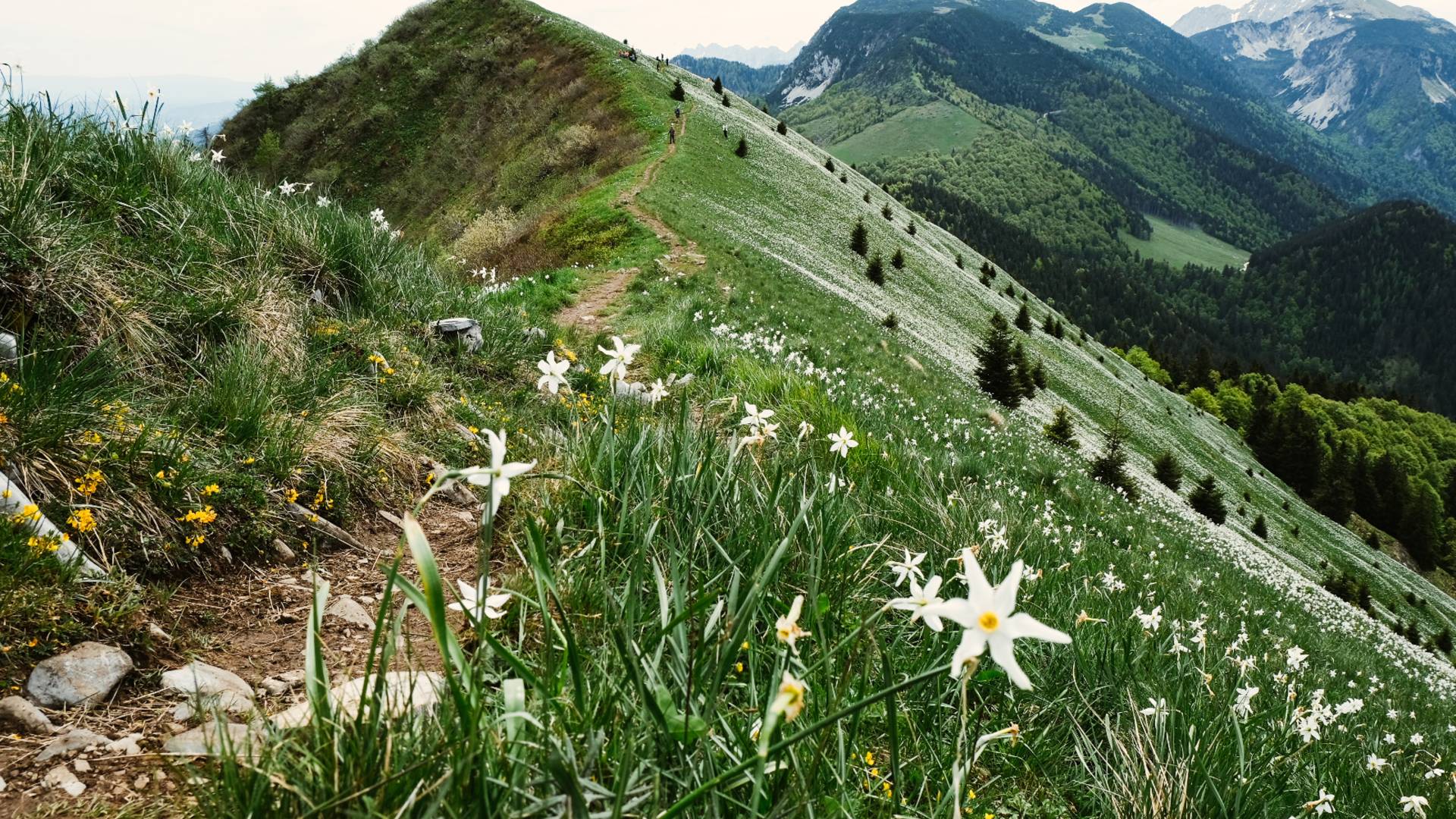 Cvetoče narcise pod Golico so pravi magnet za objave na družbenih omrežjih. Letos bodo promet ob koncih tedna umirjali tako, da bodo zapirali cesto v Planino pod Golico in Javorniški Rovt, za obiskovalce pa bo vzpostavljena brezplačna avtobusna povezava.