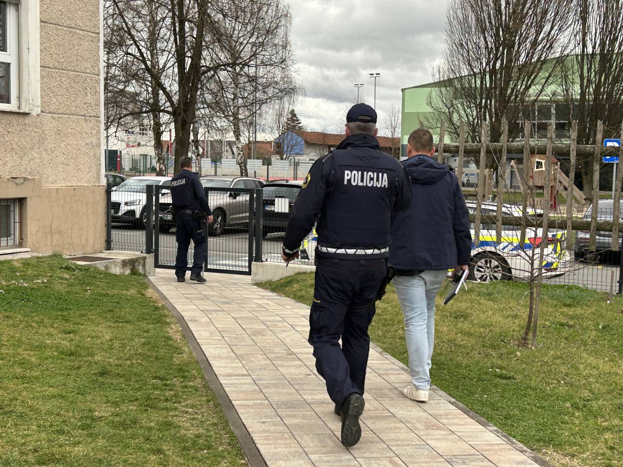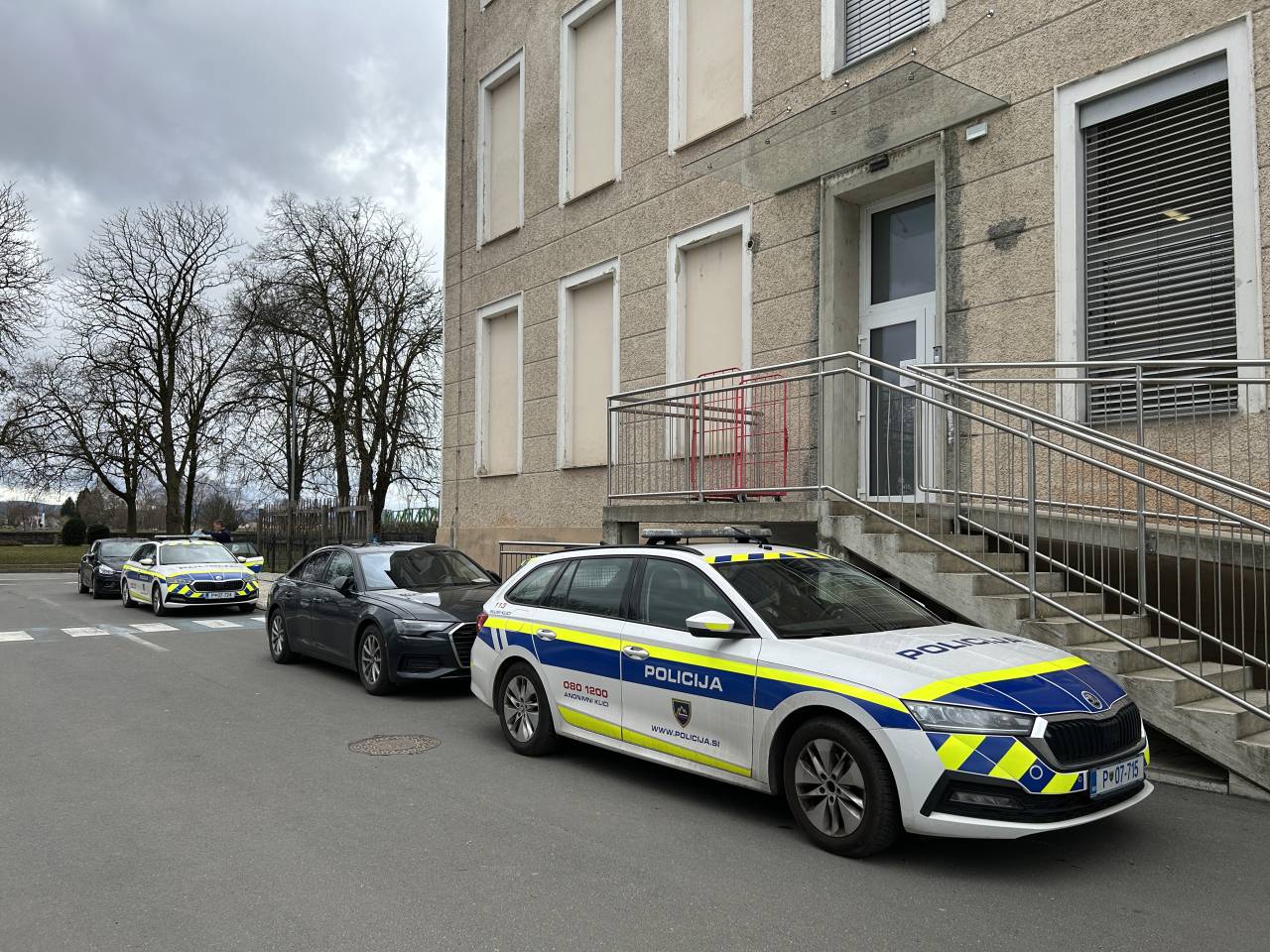 Policijska intervencija pred Osnovno šolo Mladika zaradi groženj učiteljem in županji Nuški Gajšek.