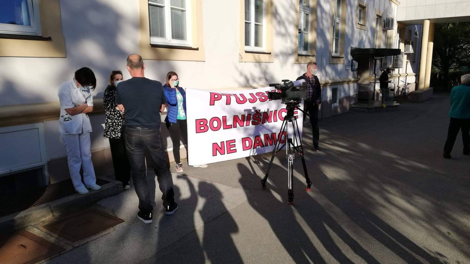 Se je pa danes ob 18. uri pred ptujsko bolnišnico zgodil tudi čisto pravi, torej fizični, protest.