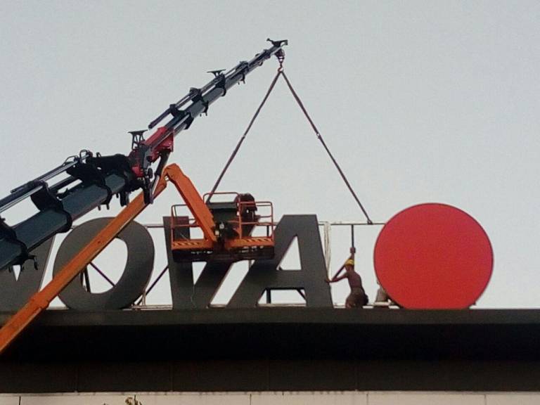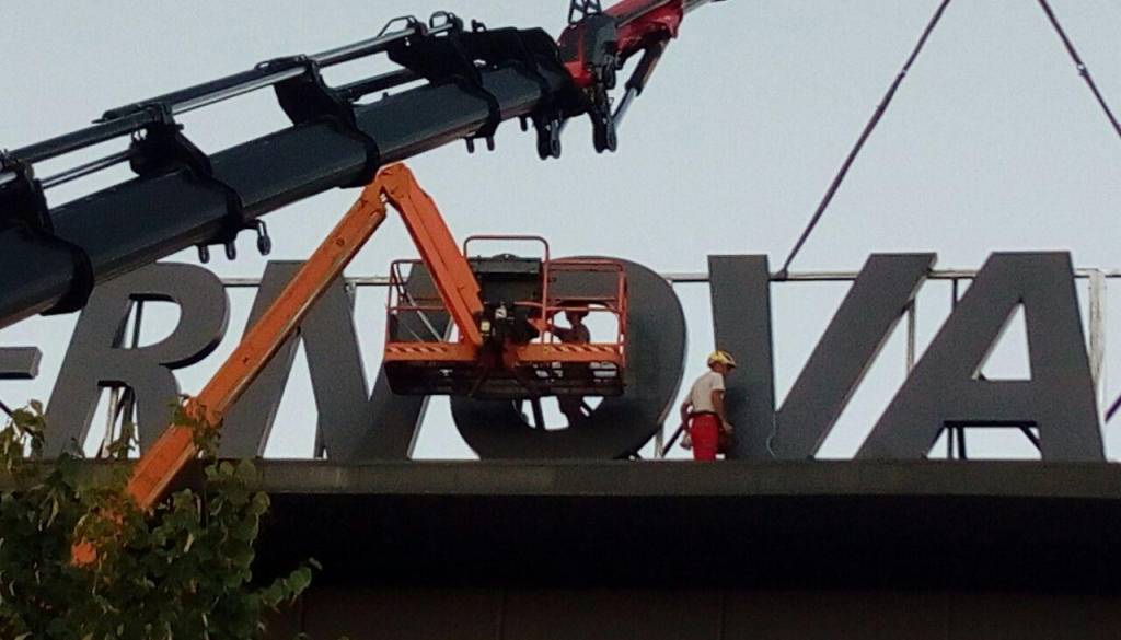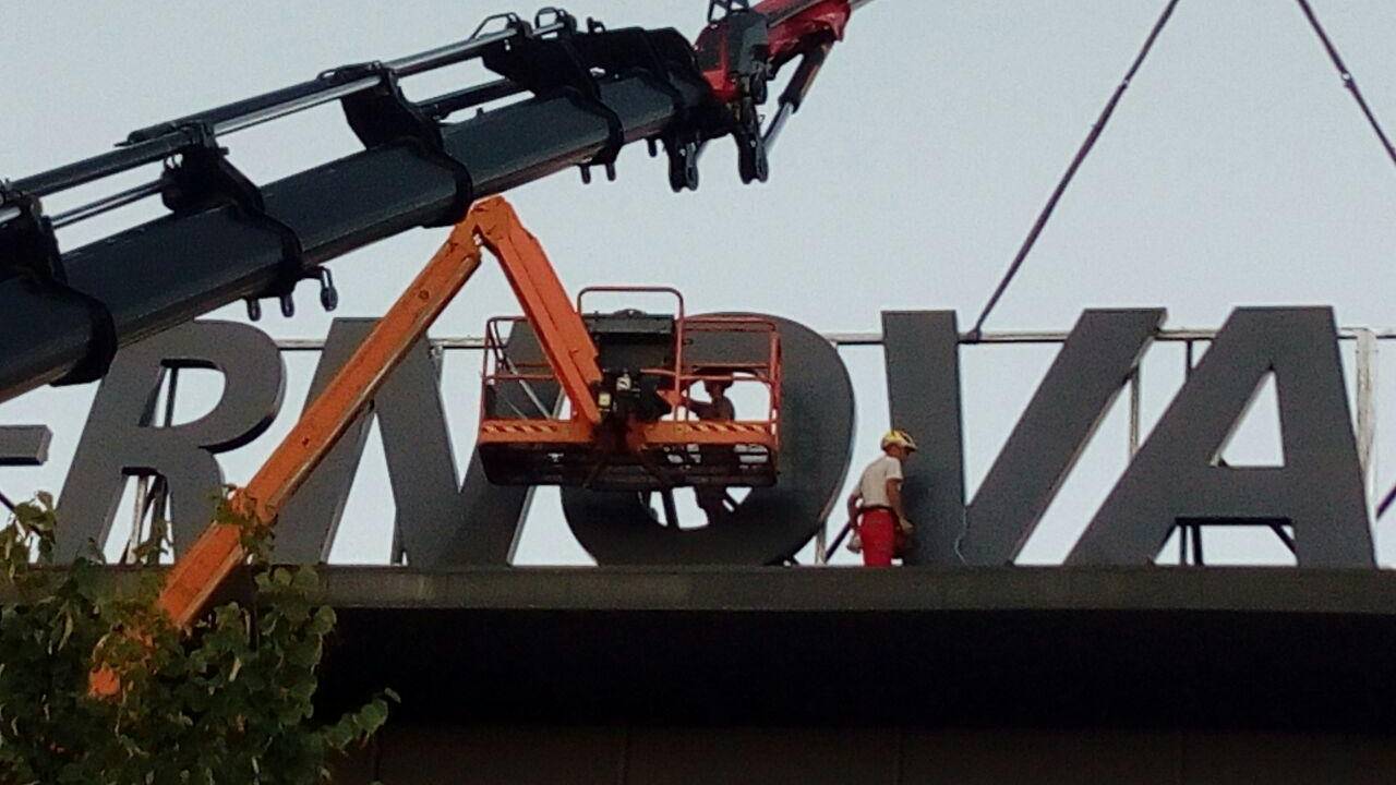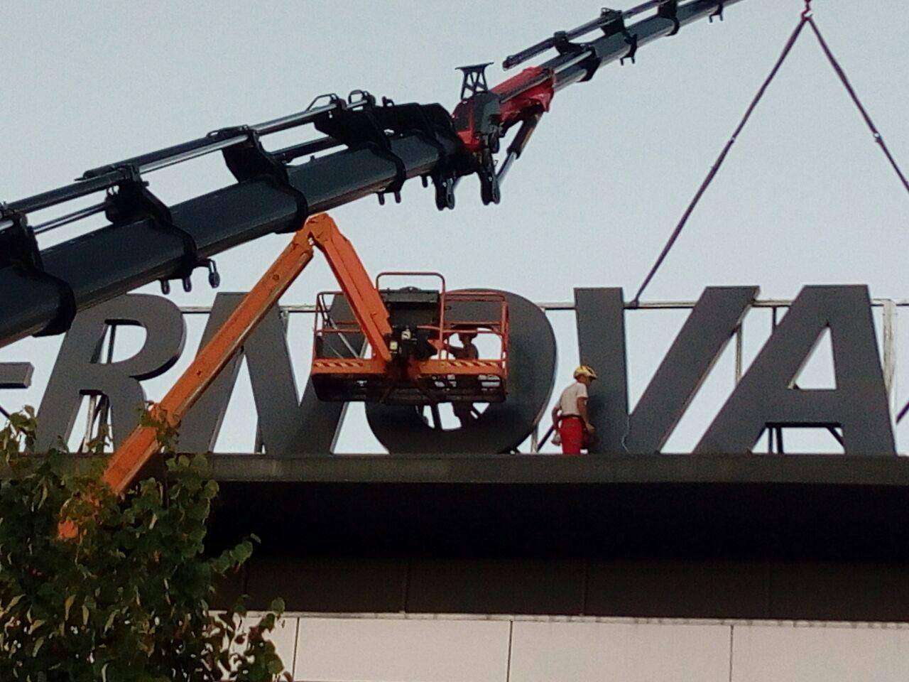 Vrh ptujskega nakupovalnega centra je dobil tablo z imenom novega lastnika.