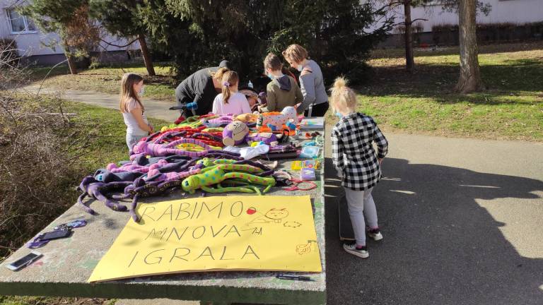 »Mi smo najprej prinesli igrače, katerih nismo potrebovali več in smo jih pač tu razstavili. Mislili smo, da bomo zbrali kakšnih 20 evrov, potem pa smo v prvem dnevu prišli kar na 200 evrov,« pravi Lejla, pobudnica akcije.