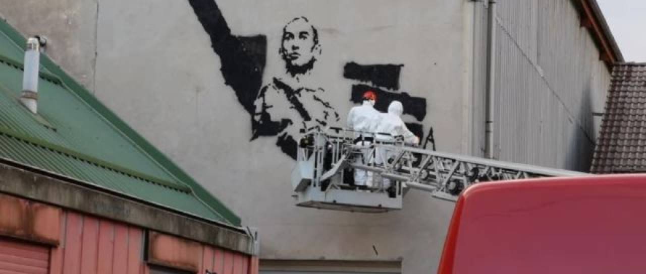 Programski svet KC Pekarna ostro obsoja včerajšnje prebarvanje grafita s podobo moškega z dvignjeno roko in napisom "Smrt narodu, svoboda fašizmu."
