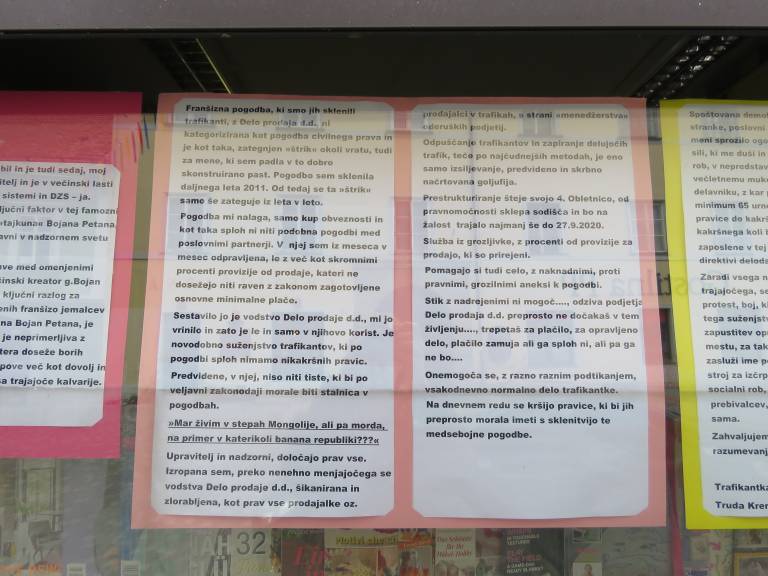 »Stik z nadrejenimi ni mogoč ... Odziva podjetja Delo prodaja preprosto ne dočakaš v tem življenju ... Trepetaš za plačilo za opravljeno delo, plačilo zamuja ali ga sploh ni ali pa ga ne bo ... Onemogoča se, z raznoraznim podtikanjem, vsakodnevno normalno delo trafikantke. Na dnevnem redu se kršijo pravice, ki bi jih preprosto morala imeti s sklenitvijo te medsebojne pogodbe,« je razkrila Trauda Krempl.