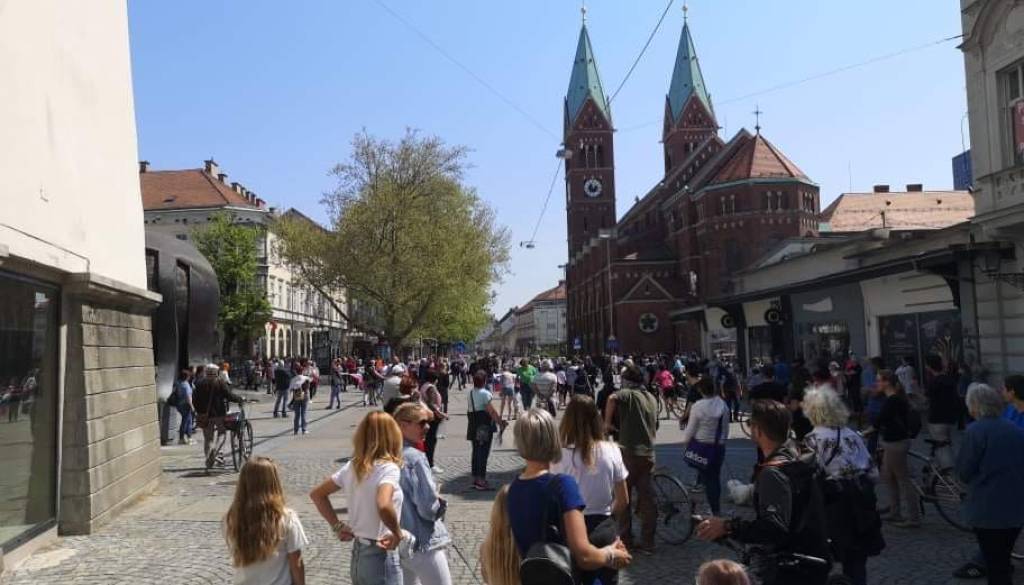 Poleg Maribora, se je okoli 200 protestnikov zbralo tudi na Trgu republike v Ljubljani.