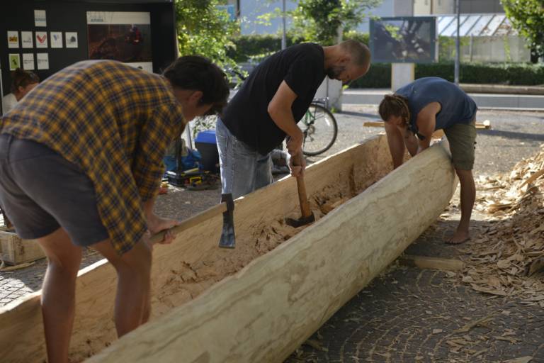 »Za rekonstrukcijo plovila, s katerim so v drugem stoletju pred našim štetjem pluli po Ljubljanici staroselci ali prvi rimski trgovci v teh krajih, smo precej dolgo iskali primerno deblo. Na koncu smo ga našli v Krakovskem gozdu, v bližini Kostanjevice ob Krki. Izbrano deblo je imelo dolžino 10,2 metra, širino več kot en meter in je tehtalo skoraj sedem ton! Takšnih danes raste v slovenskih gozdovih le malo …,« so razložili v Skupini STIK.