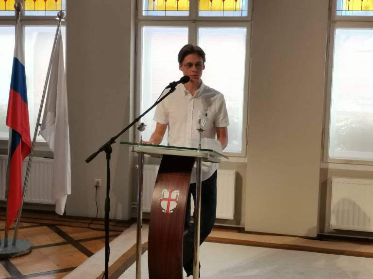 Zbrane pa je v imenu dijakov nagovoril prav slednji, Matija Berden Strelec. S svojim nagovorom je upravičil naziv prijetnega in kultiviranega sogovornika, kakor so ga opisali ob prejemu nagrade.