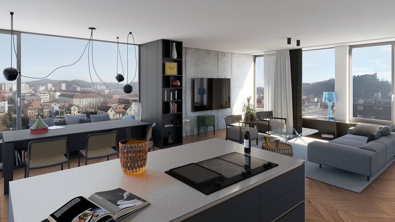 V tej novi ikoni bivanja nič ne bo prepuščeno naključju. Posebnost objekta bo tako sodobna steklena fasada, ki bo v stanovanja spustila veliko naravne svetlobe. Najvišjo etažo bo krasila zazelenjena terasa, ki bo obdajala zunanji bazen. Za impresivno zunanjost pa ne bo zaostajala niti notranjost. Stanovanja se bodo ponašala z vrhunskimi materiali in precizno izvedbo.