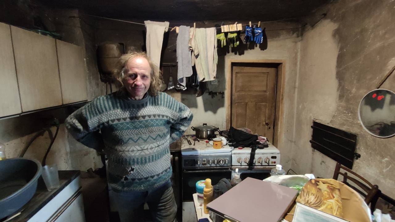 Pred desetimi leti, kot pravi, je bil še pri močeh in si je sam pekel kruh, zdaj dobiva pakete osnovnih potrebščin iz Rdečega križa.