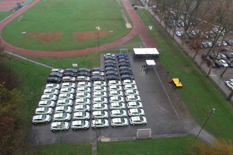 Slovesno so predali ključe novih 41 patruljnih avtomobilov, 20 civilnih meganov, treh civilnih škod in treh civilnih kadjarjev.