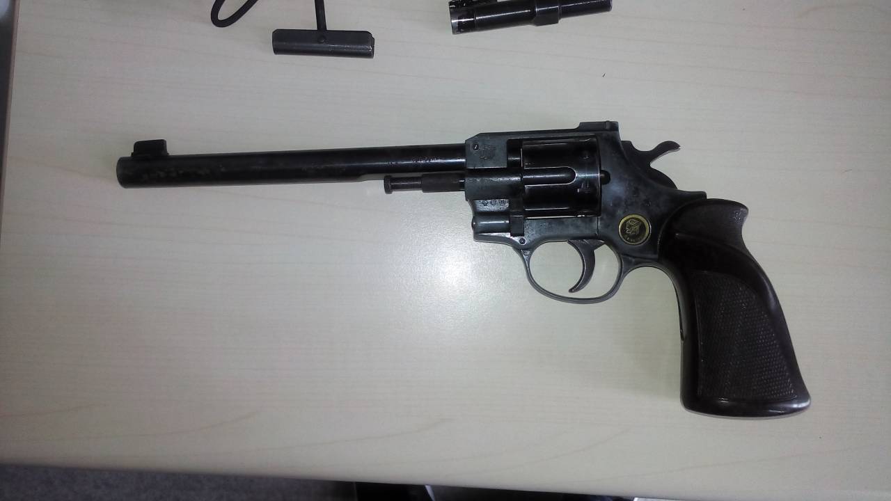 Kršitelja so pred tem obravnavali zaradi kršitve javnega reda in miru. Med hišno so našli in zasegli pištolo – revolver in 46 pripadajočih nabojev. Našli in zasegli so še dodatno krajšo cev za pištolo.
