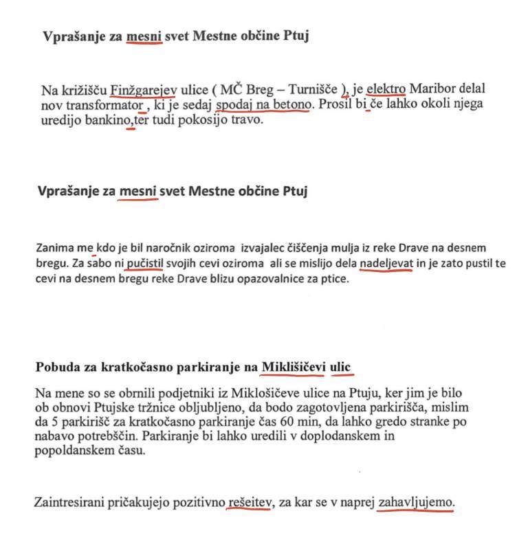 Slovnične nepravilnosti v zapisih mestnega svetnika Mestne občine Ptuj.
