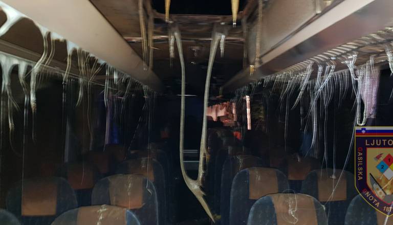 FOTO: Ogenj zajel in skoraj v celoti uničil parkiran avtobus