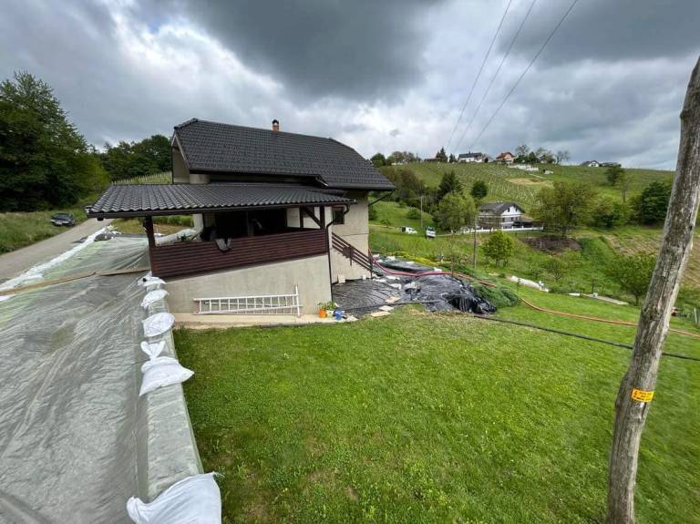 V Juršincih je zemeljski plaz v noči na sredo uničil hišo mladi štiričlanski družini, ta je zdaj ostala brez bivališča. Razmočena zemlja je premaknila tla novejše hiše, družinica pa je bila primorana najti drugo nastanitev.