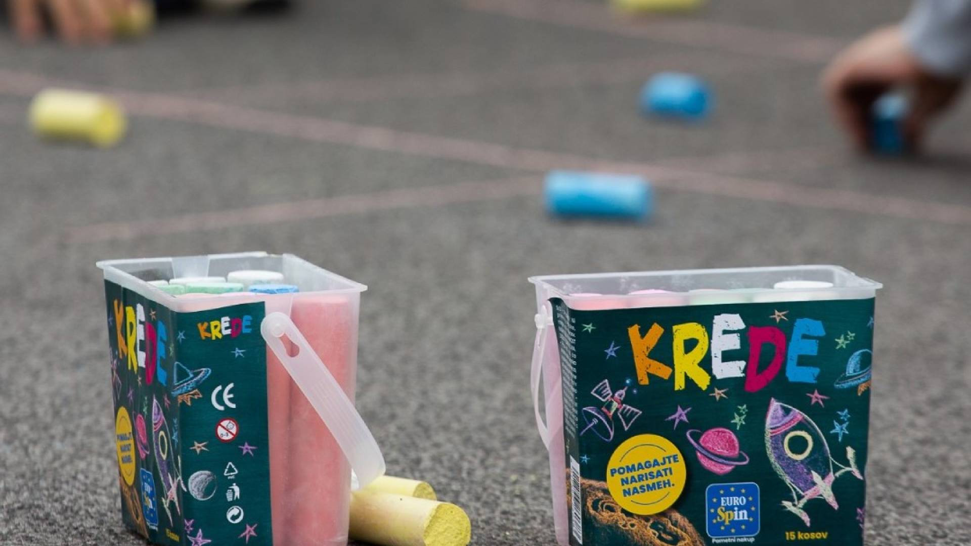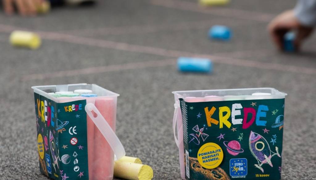 Da pa boste lahko s kredami, ko jih kupite, tudi risali, Eurospin v mestih po Sloveniji organizira risalne kotičke na njihovih parkiriščih.