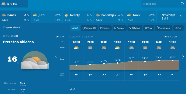 Popoldne se bo oblačnost od zahoda povečala, lahko bo nastala kakšna ploha ali nevihta.