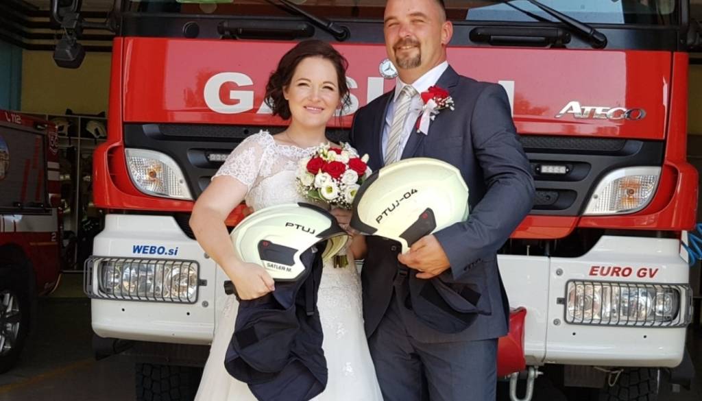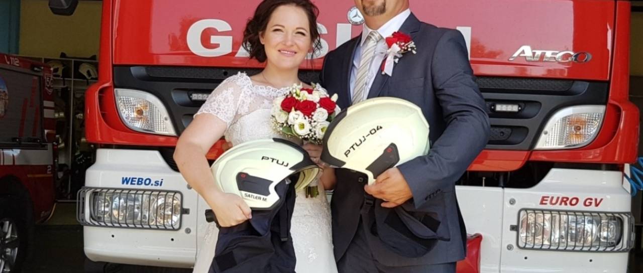 Oba zaljubljenca, Mojca Emeršič in Marjan Satler, sta člana Prostovoljnega gasilskega društva Ptuj. Marjan je gasilski častnik I. stopnje in po funkciji podpoveljnik Prostovoljnega gasilskega društva Ptuj, Mojca pa je višja gasilka in prav tako članica ptujskih prostovoljnih gasilcev.