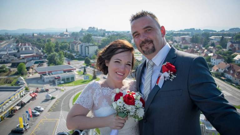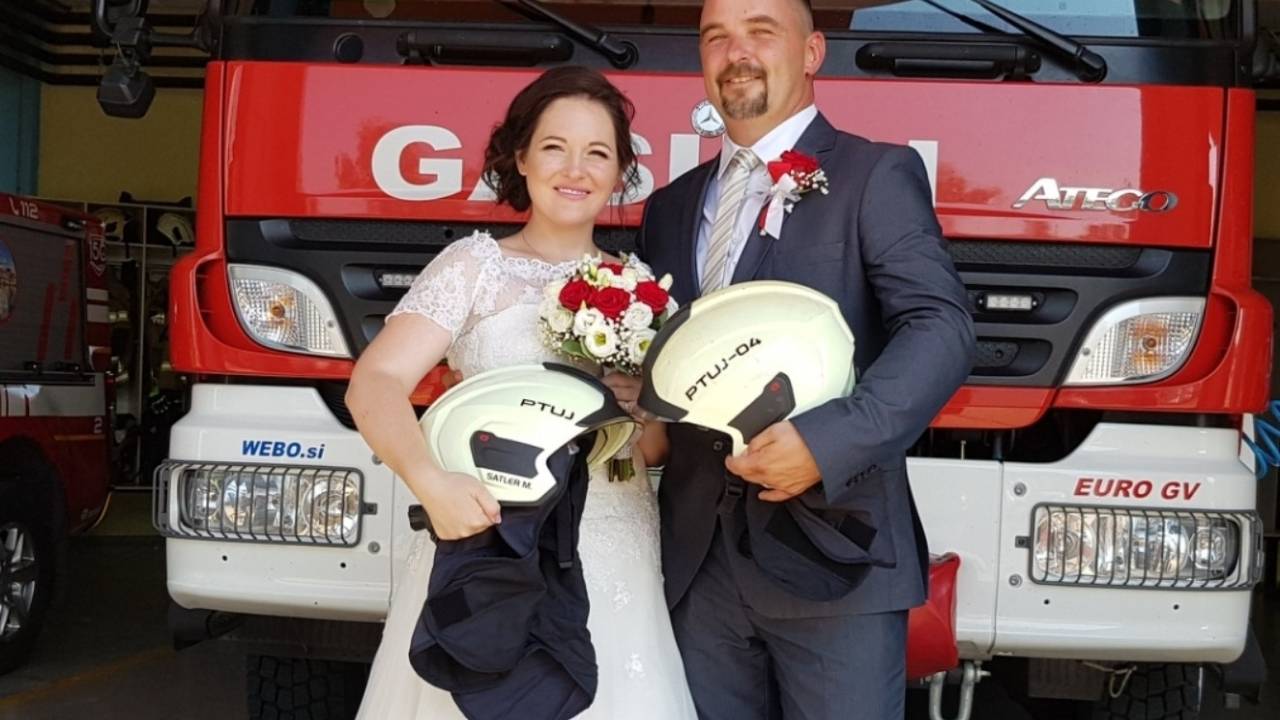 Poročila sta se prejšnjo soboto na Ptuju. Dogajanje se pričelo, kot se spodobi, pred gasilskim domom, kamor sta se pred kratkim vselila.