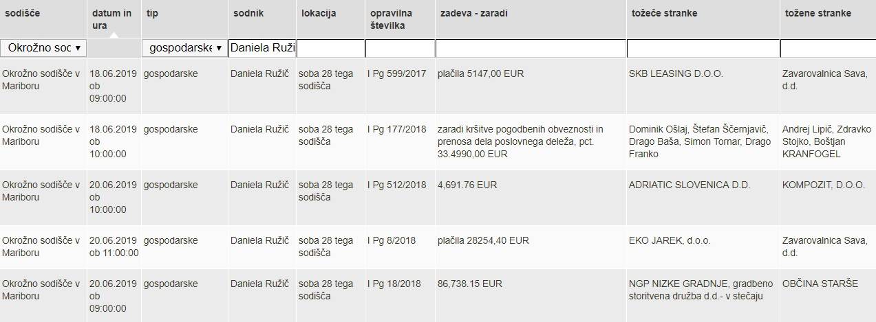 Ta teden bi imela na sporedu pet obravnav na gospodarskem oddelku Okrožnega sodišča v Mariboru.
