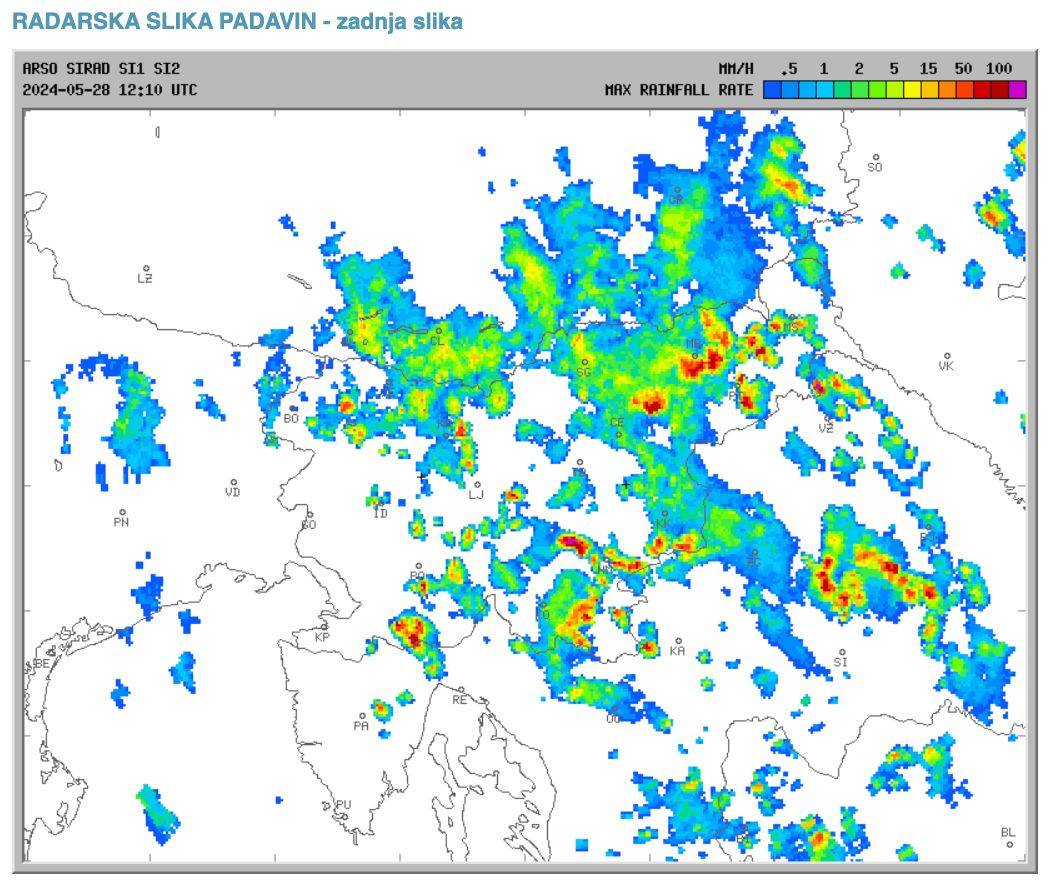 Ob prehodu oslabljene vremenske fronte so se v skladu z napovedmi agencije za okolje in portala Neurje.si, razvile posamezne nevihte.