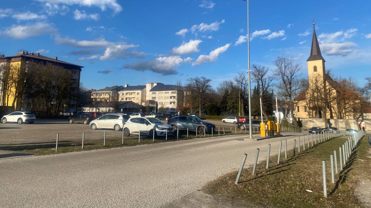 Parkirišče na Volkmerjevi pred prenovo, rampe začasno odprte