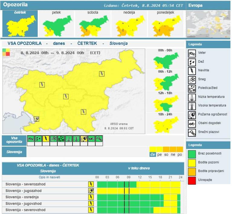 Najnižje jutranje temperature bodo od 14 do 19, ob morju okoli 20, najvišje dnevne od 27 do 31, na Primorskem do 34 stopinj Celzija, še navaja agencija za okolje.