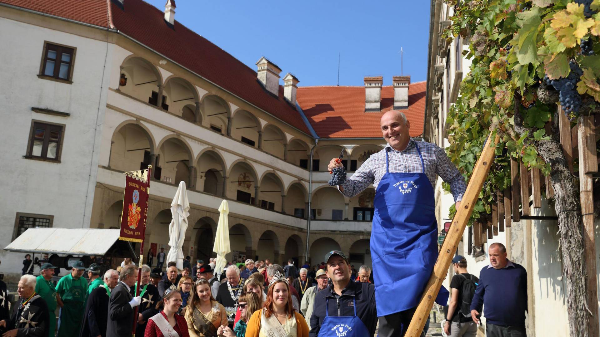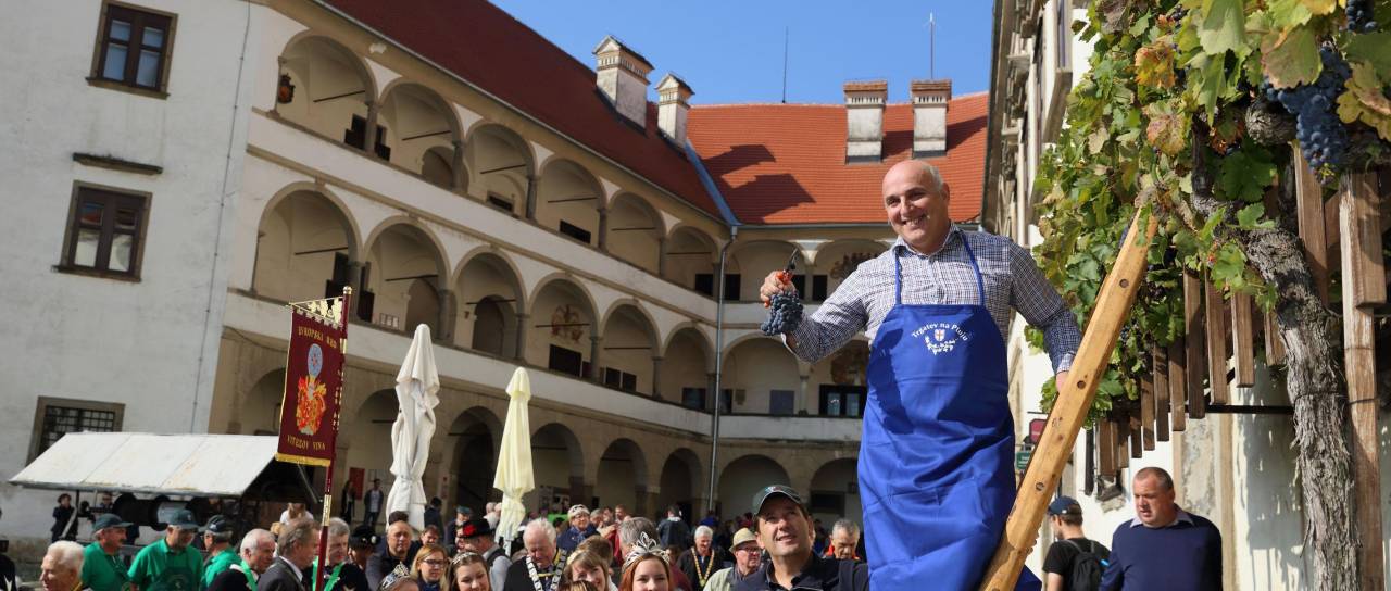 Na grajskem dvorišču so opravili tradicionalno trgatev potomke stare trte modre kavčine, ranfola, zierfahndlerja in v mestnem ter župnijskem vinogradu renskega rizlinga.