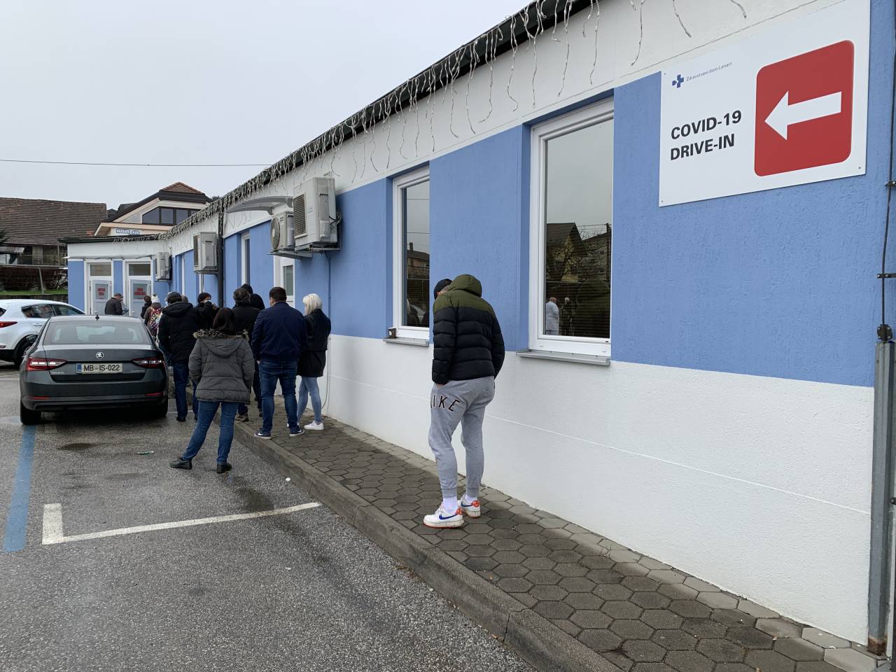 Pred Zdravstvenim domom Lenart se je že pred deseto uro zjutraj, ko se je uradno pričelo množično testiranje, pričela nabirati vrsta za hitre antigenske teste.