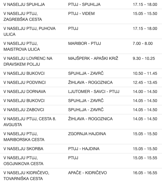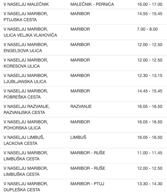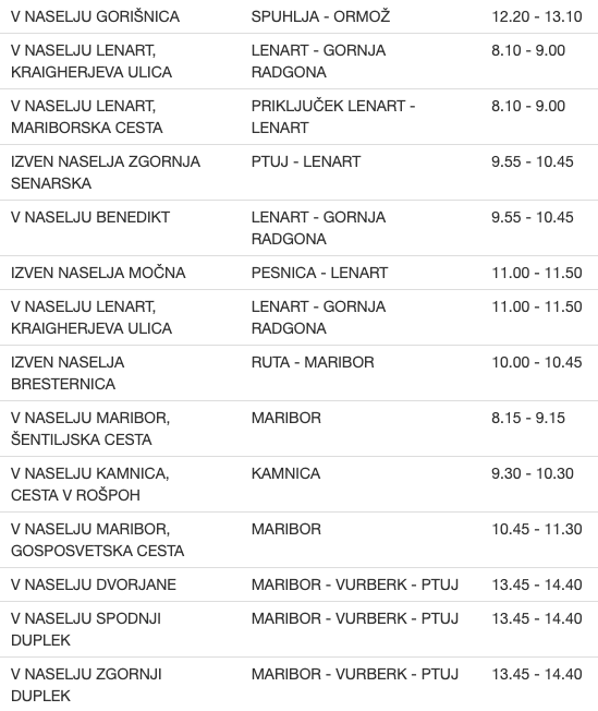 To so vse lokacije meritev na območju Policijske uprave Maribor ...