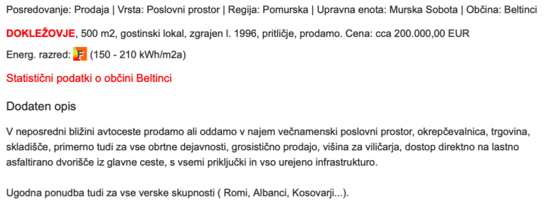 V uredništvu Mariborinfo smo na spletni strani Nepremicnine.si zasledili sila nenavaden oglas. Nekdo oddaja poslovni prostor, natančneje gostinski lokal, velik kar 500 kvadratnih metrov.