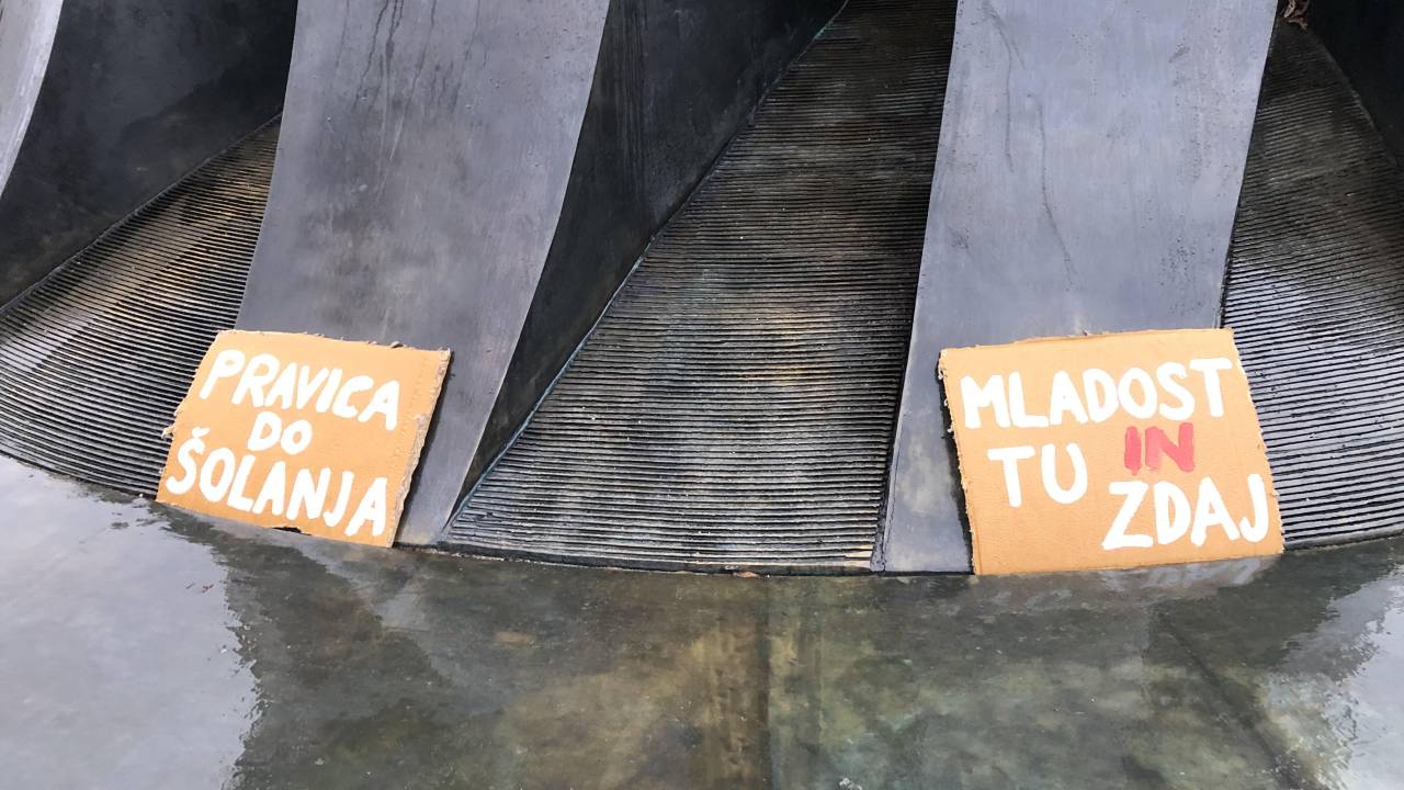 Protestnike so v glavnem sestavljali dijaki, ki so opozarjali na to, da je šola ustavna pravica in držali plakate, kot so »Zahtevamo šolo«, »Dovolj nam je« in »Manj Zooma, več razuma«. Slišalo se je petje slovenske himne, protest pa je spremljala in nadzorovala tudi policija.