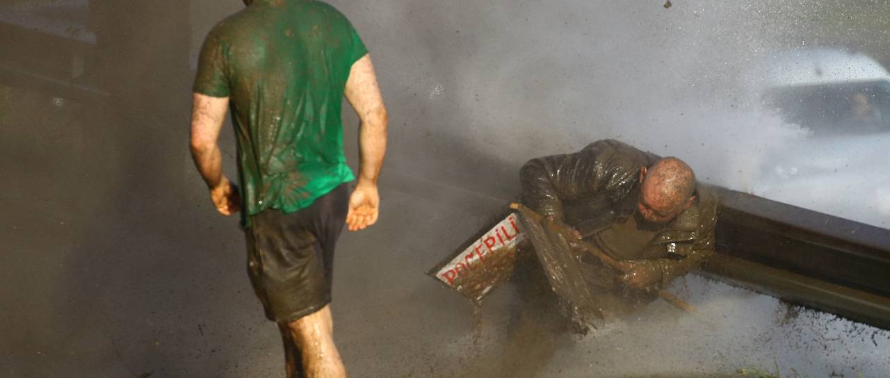 15.45 - Protestniki so policistom na neprebojne jopiče zataknili rdeče vrtnice in jim ploskali. Policisti stojijo mirno kot britanska kraljeva straža.
