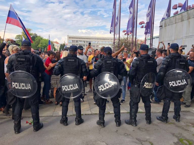 19.40 - Protesti še trajajo. Policija umirja stanje na Trgu republike.