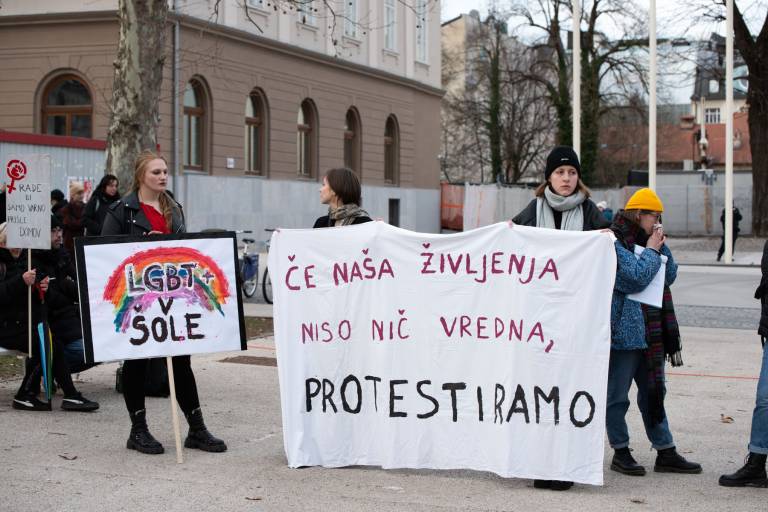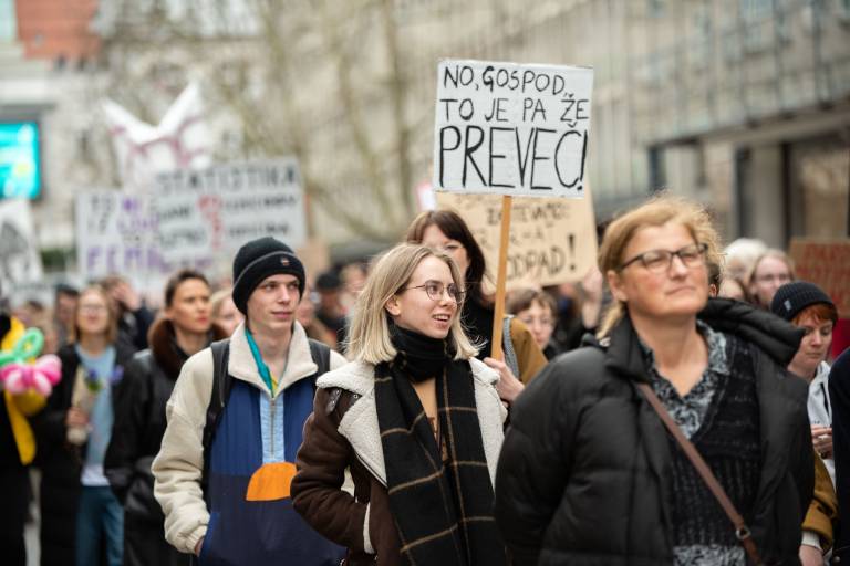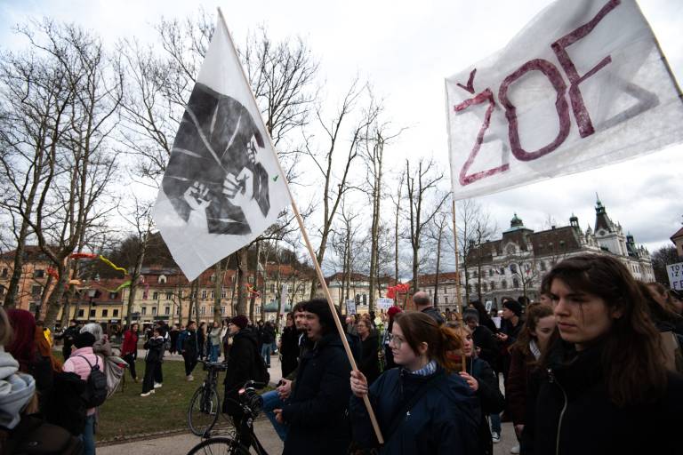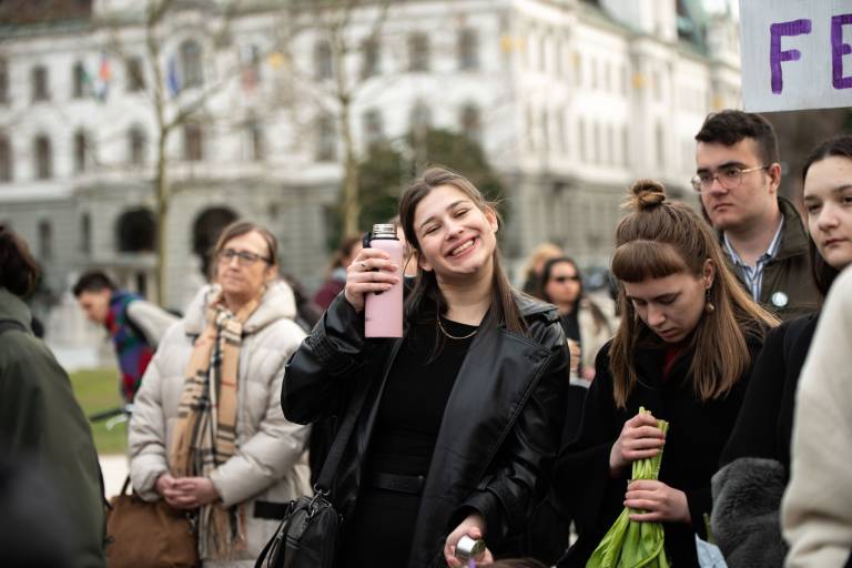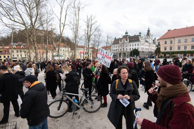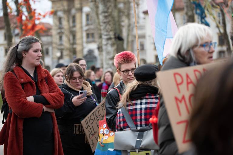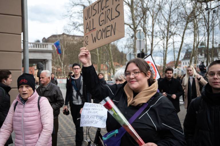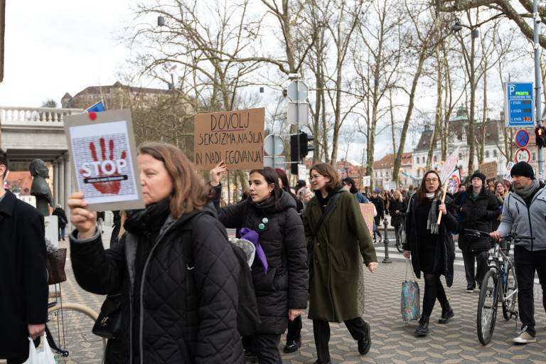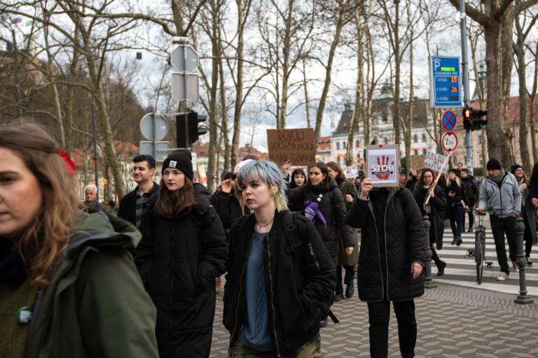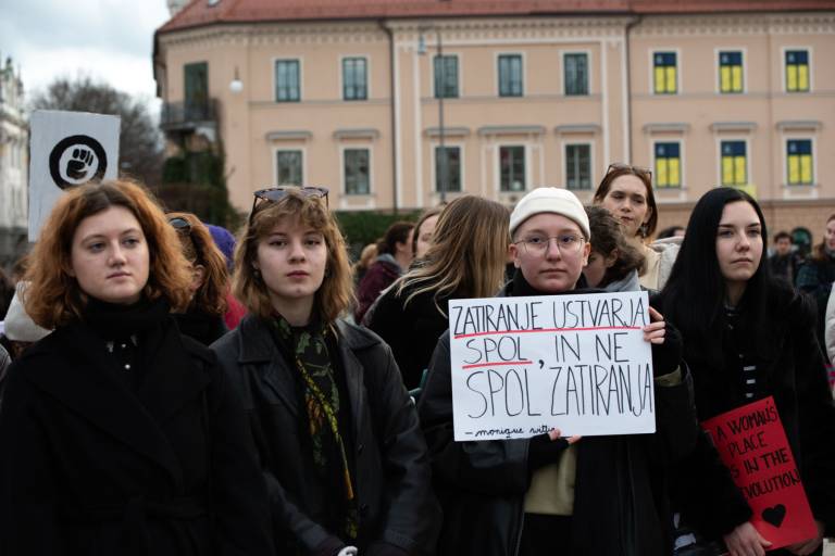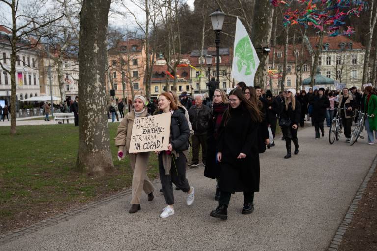 Na Kongresnem trgu v Ljubljani se danes odvija feministični protest ob 8. marcu, in sicer pod geslom Patriarhat ubija!