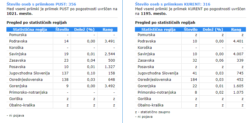 Zato ker je po podatkih Statističnega urada Republike Slovenije največ prebivalcev Slovenije s priimkom Pust pravzaprav živelo v osrednjeslovenski statistični regiji, in sicer 138. Obenem je tam živelo tudi največ prebivalcev s priimkom Kurent. Tako se je namreč pisalo 184 ljudi v osrednji Sloveniji, medtem ko smo jih v naši statistični regiji, domovini kurentov, našteli 'le' deset.
