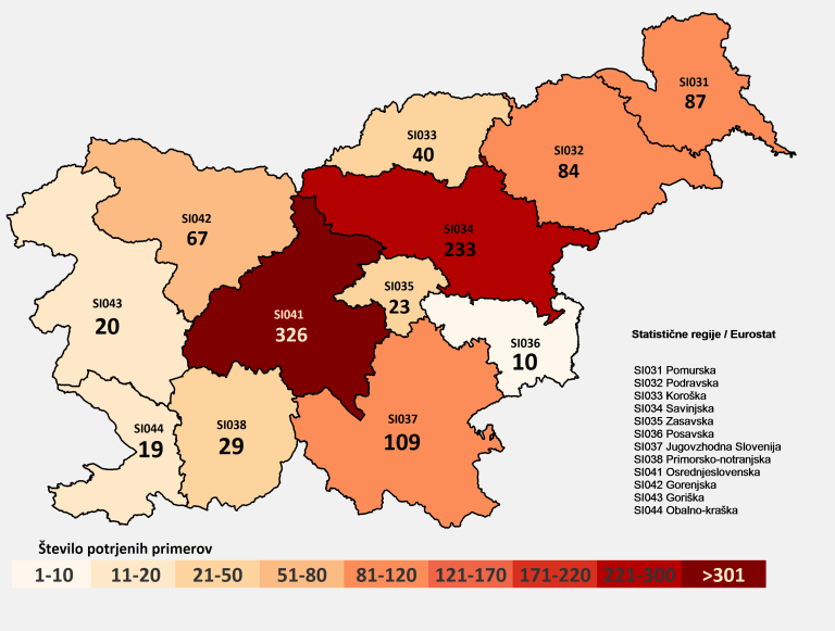 Tako okužene osebe prihajajo iz naslednjih statističnih regij: