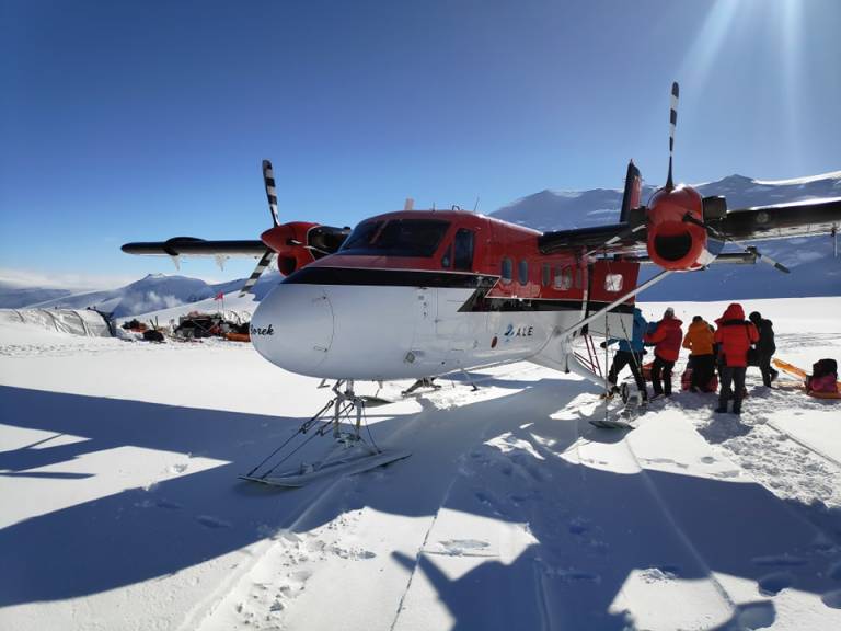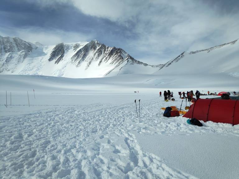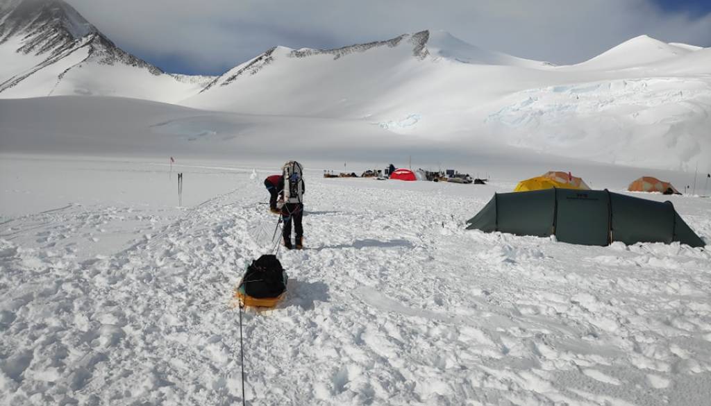 Ko so bili enkrat v baznem taboru, so čakali na ugodno vreme, da so lahko poleteli v drugi bazni tabor, pod goro Mount Vinson, kjer je bilo že vse pobeljeno s snegom in od tam so se peš odpravili na vrh.