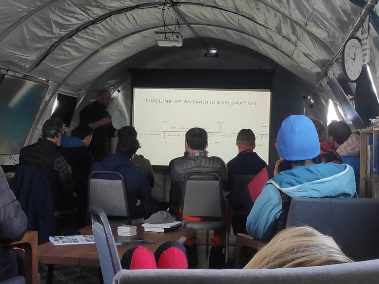 »Na Antarktiki je trenutno polarni dan, zato je sonce sijalo ves dan. Če je bilo sončno, so se temperature gibale okoli približno -25 stopinj Celzija, če pa je bilo oblačno, pa so se temperature spustile tudi do -45 stopinj Celzija in pihal je veter.«