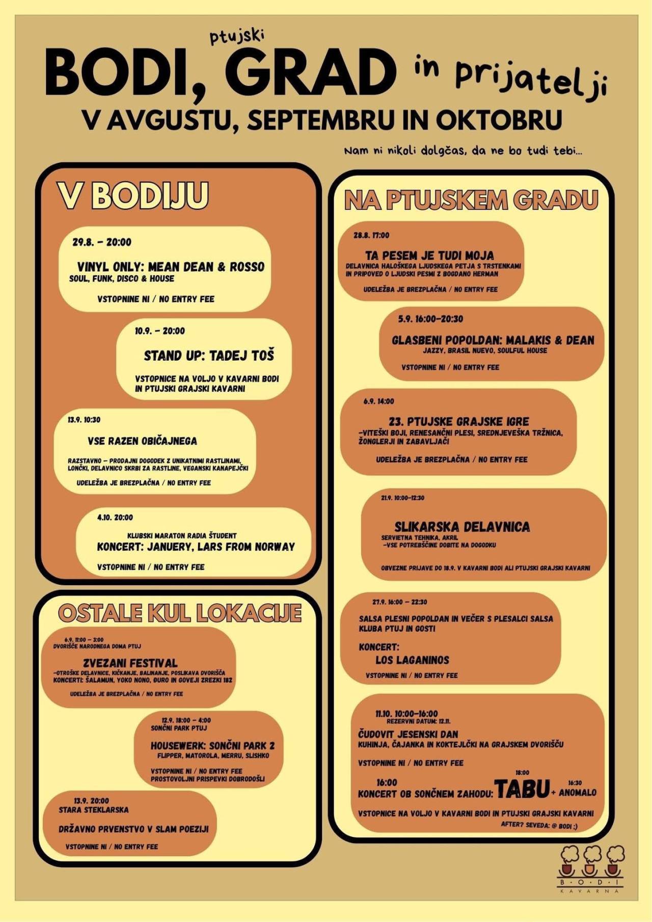 Kavarna bo poskrbela, da ustvarijo pester program za vse generacije, zato se bo v septembru in oktobru na Ptujskem gradu zvrstilo kar nekaj zanimivih dogodkov.
