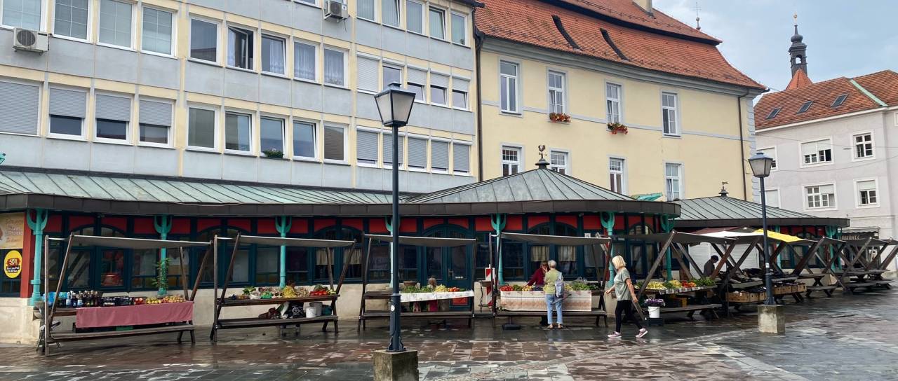 Tržnica sicer je, vendar ne na mestu, ki je bilo za to predvideno. Ponudba na stojnicah pred Blagovnico trenutno vključuje tudi pridelke okoliških kmetij, ni pa vedno tako pestra.
