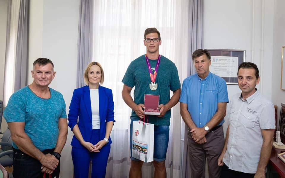 Županja Mestne občine Ptuj Nuška Gajšek je včeraj s sprejemom v svoji pisarni v Mestni hiši počastila Kristjana Čeha, evropskega prvaka med mlajšimi člani v metu diska.
