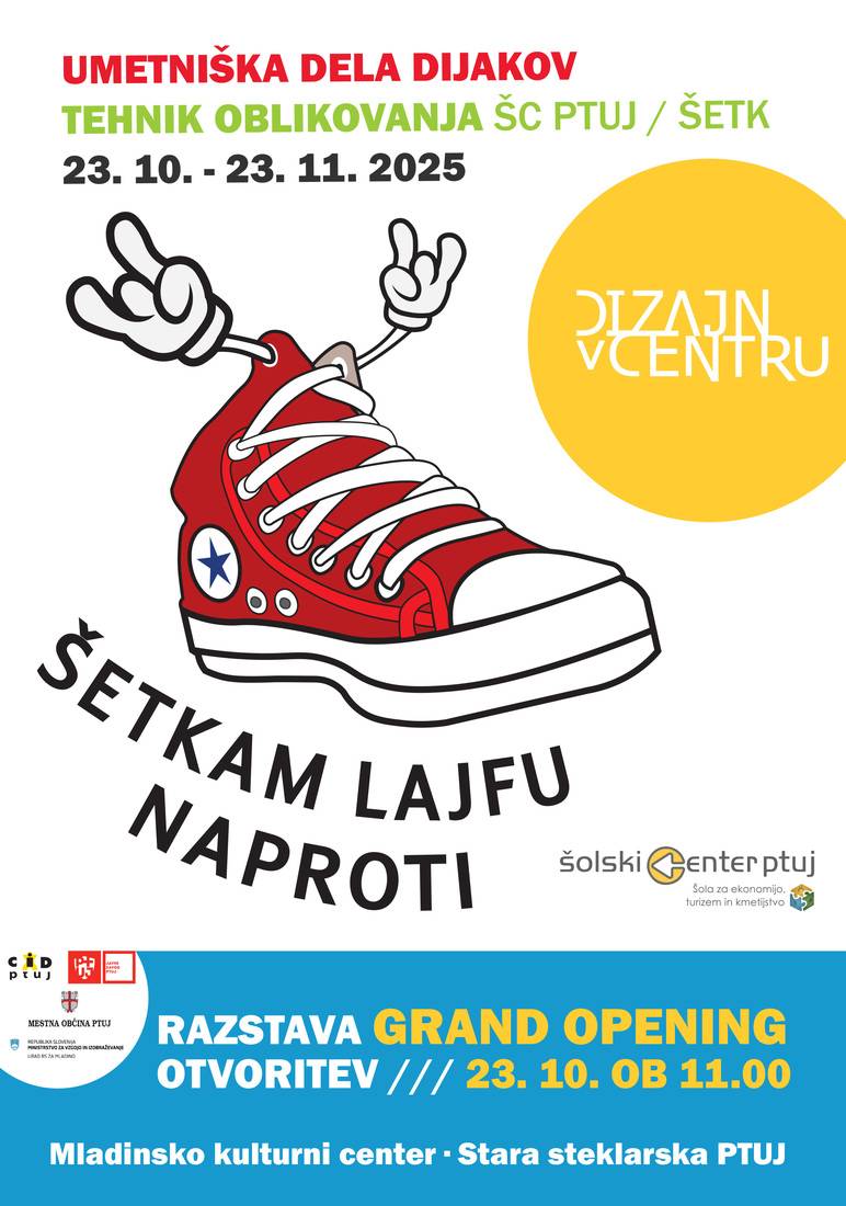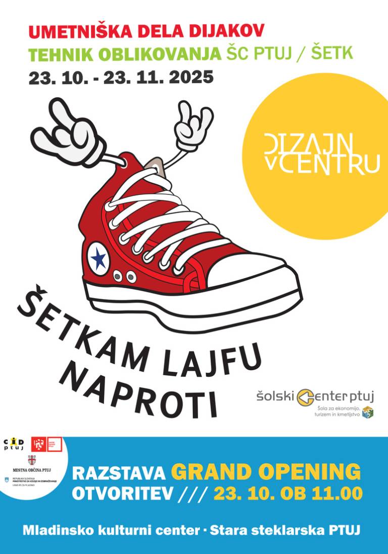 V Mladinskem kulturnem centru Stara steklarska na Ptuju bodo v četrtek, 23. oktobra 2025, ob 11. uri, odprli razstavo GRAND.OPENING, ki predstavlja uvod v novo šolsko sezono mladih ustvarjalcev z oddelka Tehnik oblikovanja na Srednji šoli za ekonomijo, turizem in kmetijstvo Ptuj.