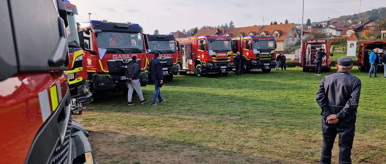 Slovenski družbi sta pred gasilskim domom predstavili svoja vozila