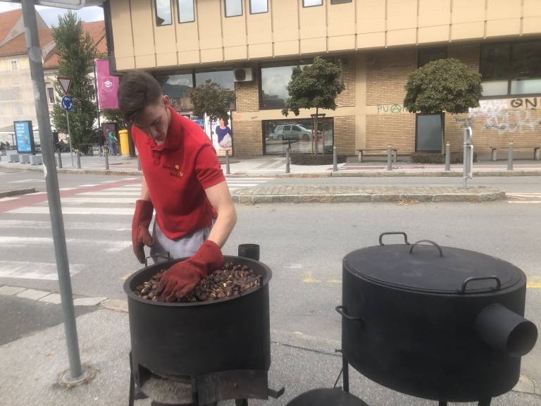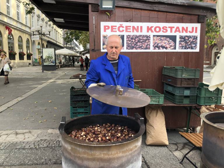 Le kdo ne pozna kostanjepeka Zaima, ki že več kot 25 let vsako sezono skrbi, da nihče ne ostane brez okusnih pečenih kostanjev? Tudi letos ga lahko vidite na njegovi standardni lokaciji na Trgu svobode.