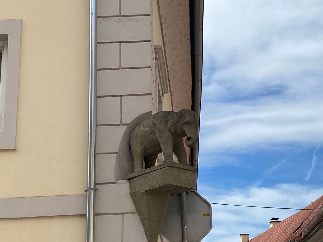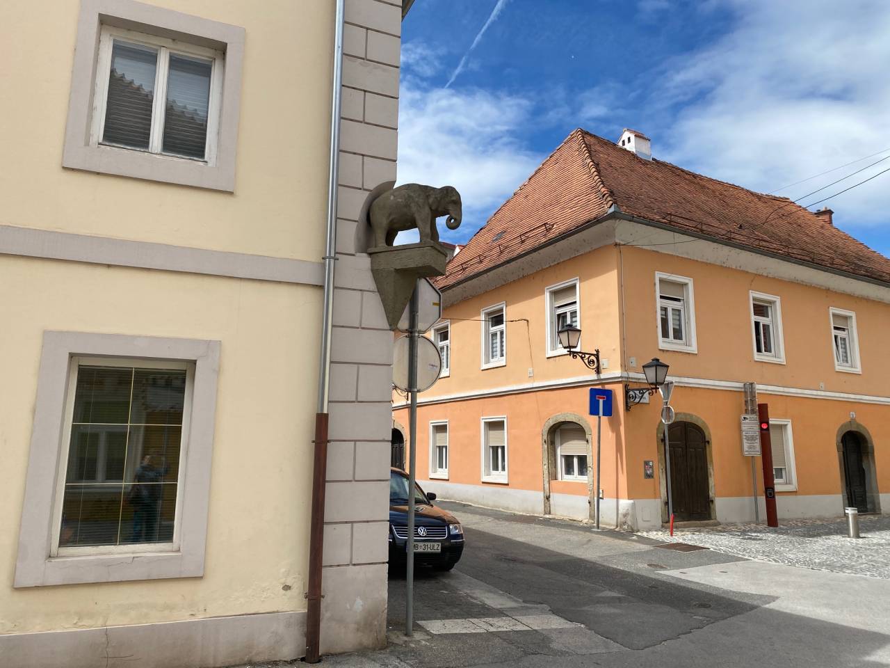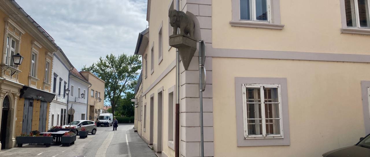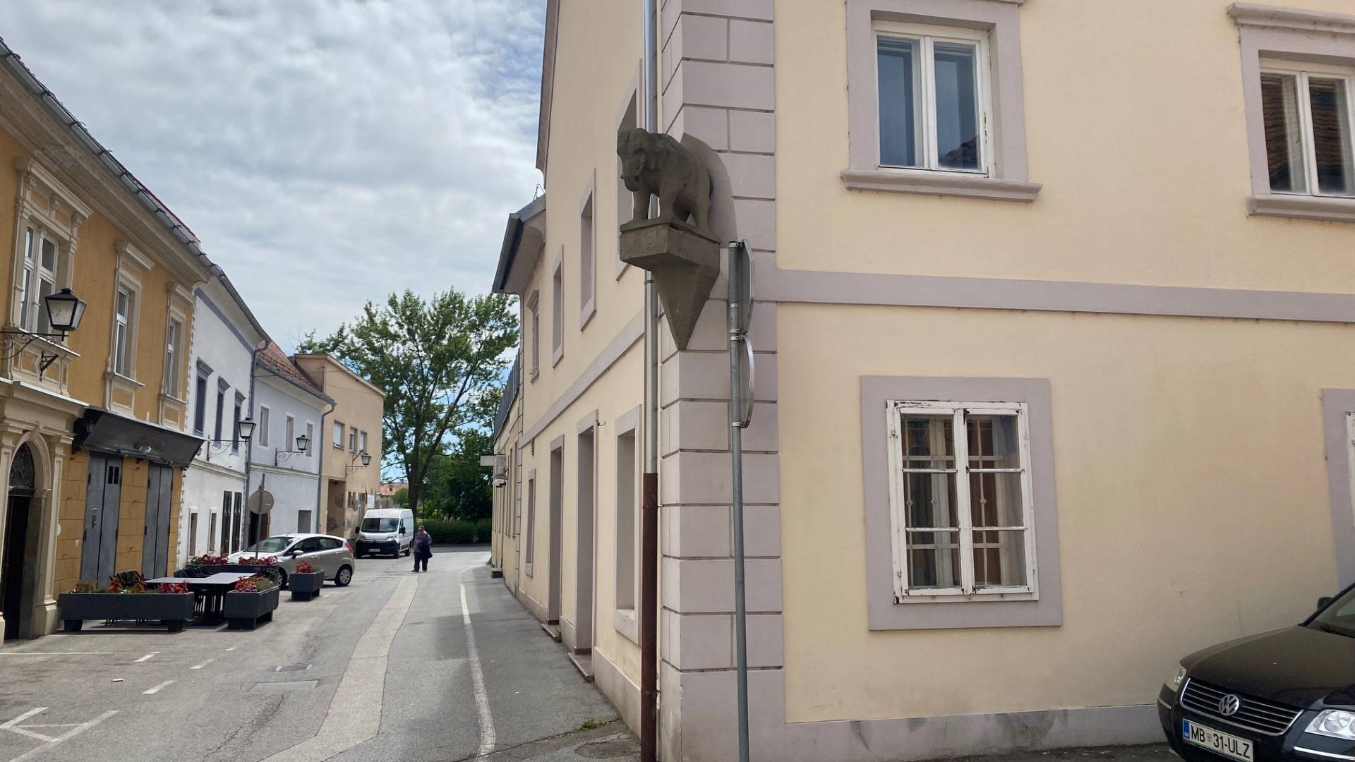 Na Vošnjakovi ulici na Ptuju lahko na stavbi opazimo kip slona.