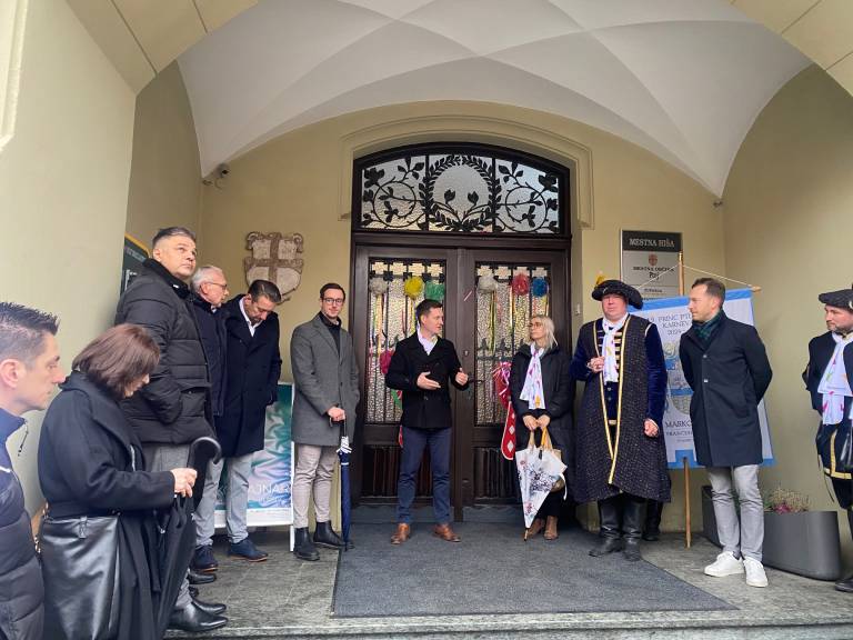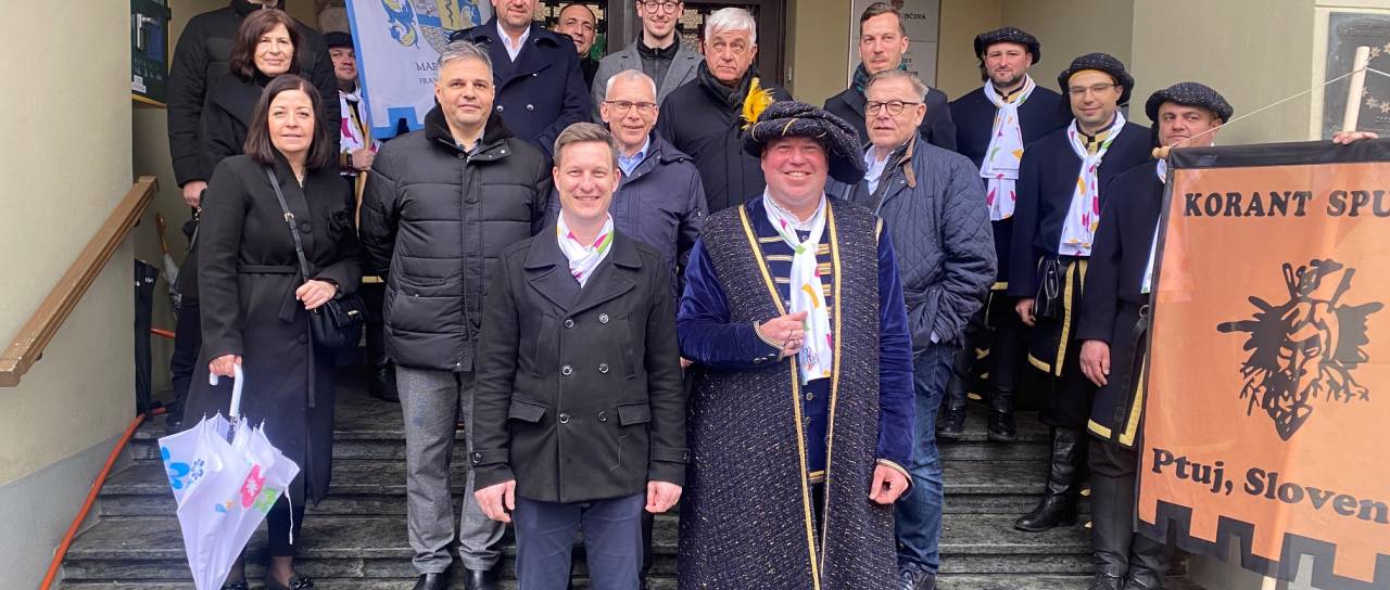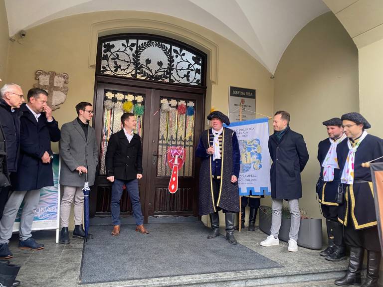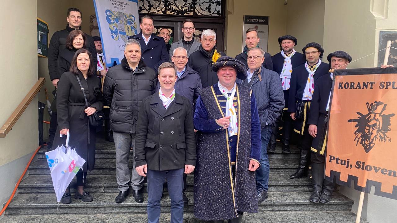 Direktor Javnega zavoda Ptuj Matic Ber se je s sodelavci in 19. princem karnevala Markom Šamperlom pred Mestno hišo srečal z glavnimi pokrovitelji ter izvajalci festivala.