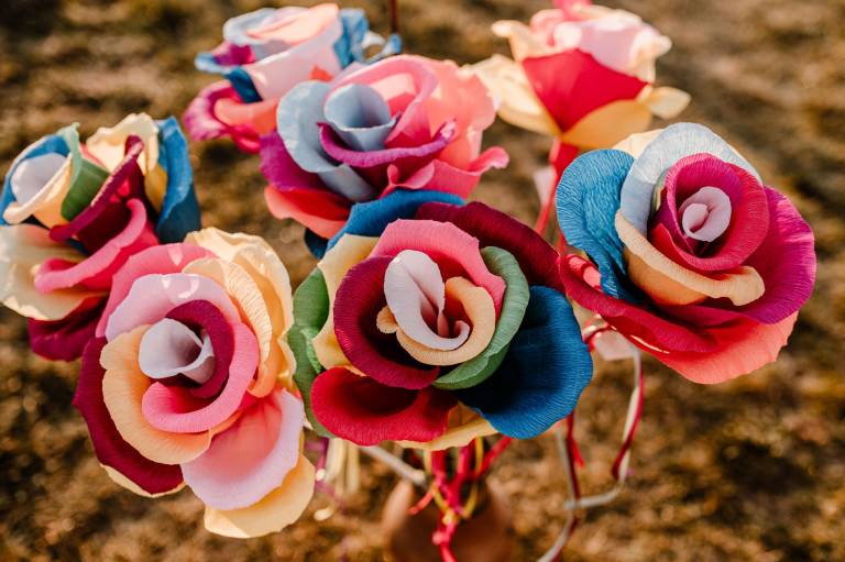 »Izdelujemo vse vrste dekoracij iz krep papirja. Korantove rože, ki krasijo korantovo kapo, pustne duhce, pomladnice, torej rože iz krep papirja, ki so odličen okras za vsak dom, pisarno ali gostilno ... «