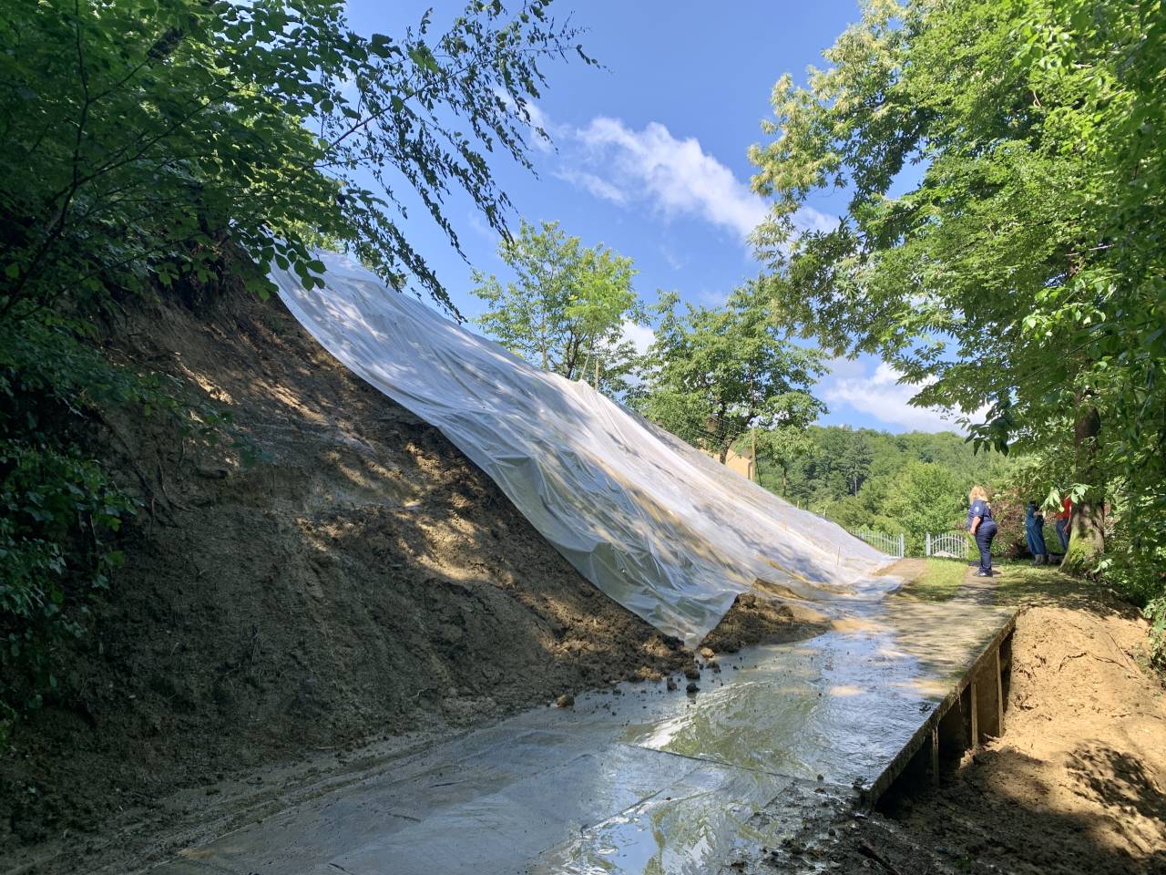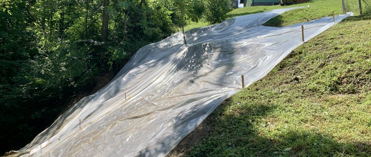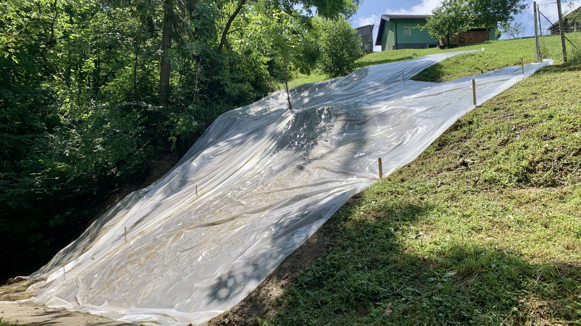 »Ampak kot vidite tudi pod folijo dejansko zemlja plazi, voda teže ven, čeprav je cel hrib pokrit,« poudarja Valentina Ošlovnik.